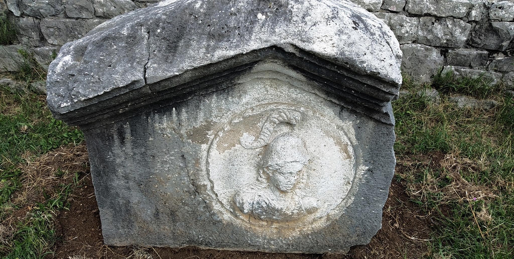 мрамора один надгробный камень, на котором еще сохранились слова: Avia filia
